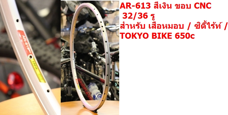 ล้อโตเกียวไบค์ ARAYA รุ่น AR-613 ขนาด 650c มี 32 และ 36 รู สำหรับทัวร์วินเทจริ่ง ฟิกซ์เกียร์ รถโบราณคลาสสิค มีสีให้เลือกคือ 1. สีดำขอบ CNC ขนาด 32 และ 36 รู 2. สีเงินขอบ CNC ขนาด 32 และ 36 รู