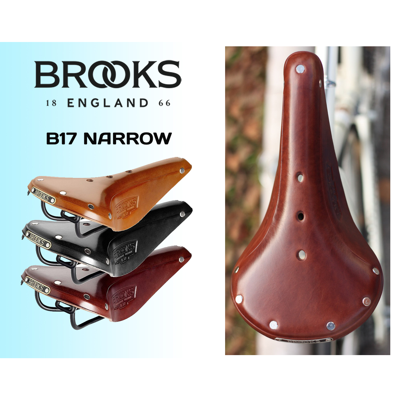 Brooks B17 Narrow รุ่นนี้ให้ความสปอร์ทมากขึ้น ดีไซน์บางลง ออกมาให้นักปั่นสไตล์ racing และ sport touring ต้นขาเสียดสีอานน้อยกว่า B17 standard หมุดสีเงิน รางสีดำ (nickle rivets / steel rails {enamel coated}) LENGTH : 279mm WIDTH : 151mm HEIGHT : 70mm แหล่งผลิต ประเทศอังกฤษ ________________________ สอบถามและสั่งซื้อได้ที่ Tel. 087-7015151 ID line : BOVELO สินค้าในร้าน http://www.bvbangkok.com/shop.html Shopee Store https://shp.ee/zezaekd