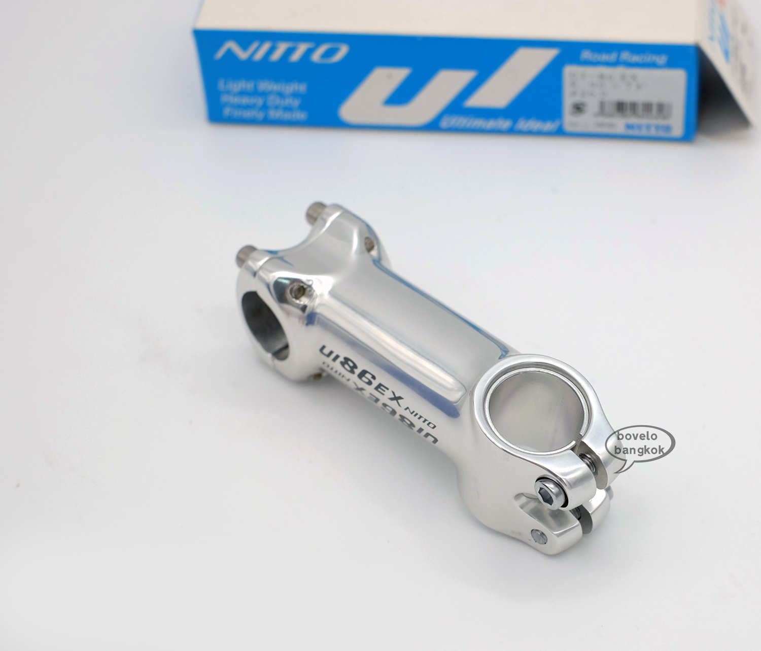 สเต็มคอหนีบ NITTO UI86ex ขนาด 26.0 ยก 17 องศา Material : Fordge Aluminum Handlebar Clamp : 26.0 mm Post Clamp : 28.6 [with 25.4 shim] extionsion: 80mm = 155g 90mm = 160g 100mm = 165g 110mm = 170g แหล่งผลิต ประเทศญี่ปุ่น