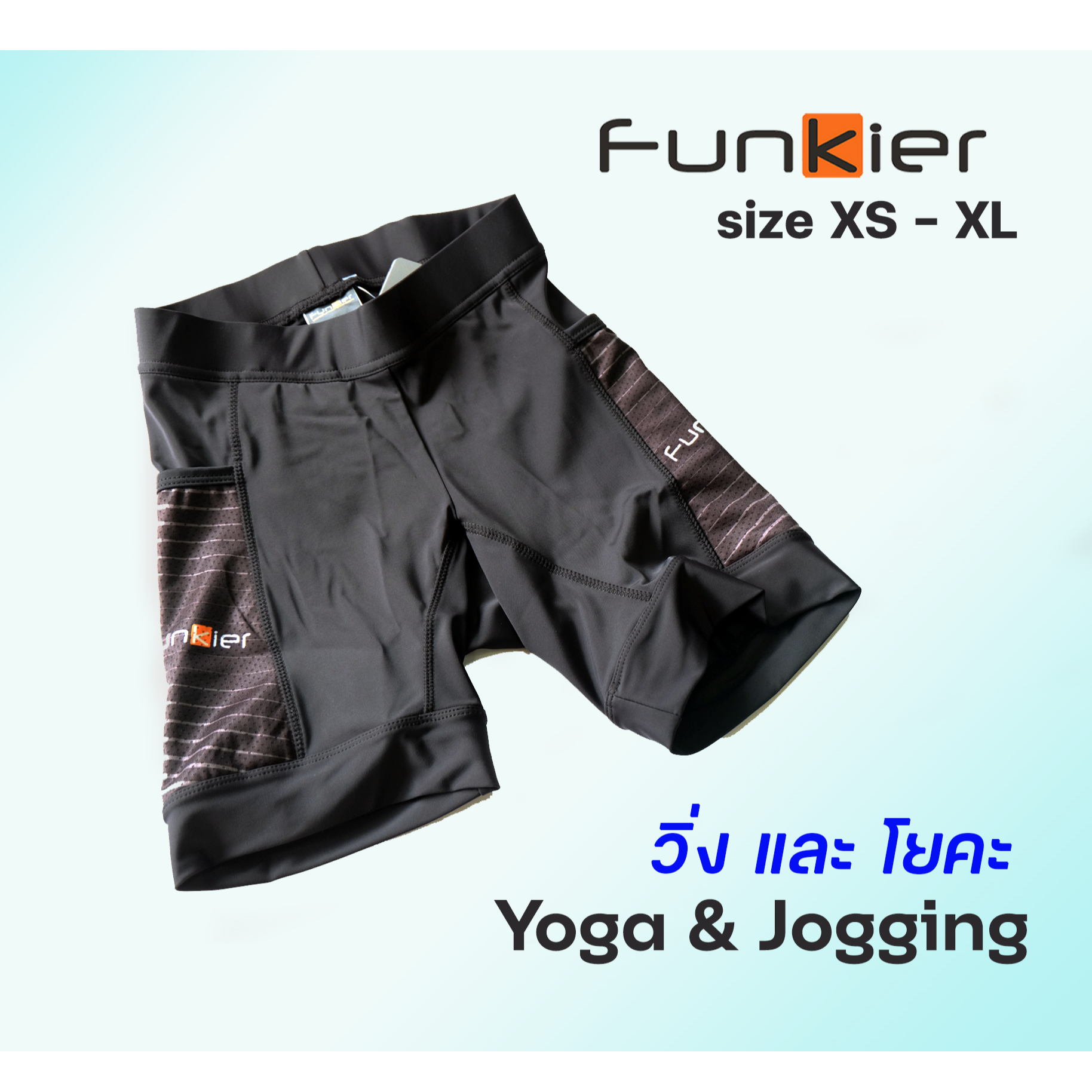 กางเกงวิ่งและโยคะ FUNKIER RSW226 เนื้อผ้าป้องกันรังสี UV เส้นใย Dupont ระบายอากาศได้เร็ว แห้งเร็วมาก เหงื่อออกไม่รู้สึกอับชื้นและอึดอัด - 4-way strech ยืดหยุ่นทุกทิศ สบายตัว - มีกระเป๋าสองข้าง - ไม่มีแผ่นเป้า size วัดสะโพก XS = 34.5 - 36" S = 36 - 38" M = 37.5 - 39" L = 38.5 - 41" XL = 40.5 - 43" #funkier #yoga #กางเกงโยคะ #กางเกงวิ่ง #ออกกำลังกาย #กางเกง