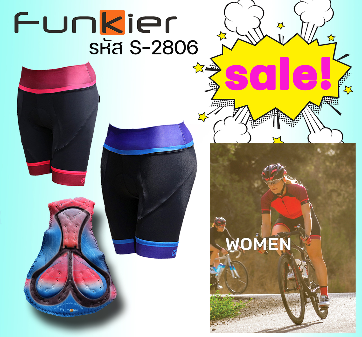 กางเกงปั่นจักรยานสุภาพสตรี เป้าเจล รุ่น PESCARA S-2806-F5 เป็นเป้าใหม่ระดับ elite เบาะและกระชับ รุ่นนี้ใช้เป้า F-5 ที่เป็นเป้าใหม่ล่าสุดระดับท๊อปสุดของฟังเกียร์ สำหรับนักปั่นสุภาพสตรีที่เน้นประสิทธิภาพในการปั่นอย่างจริงจัง เนื้อผ้าใหม่ที่มีความเนียนละเอียดกว่าเนื้อผ้ามาตรฐาน (เนื้อเดียวกันกับกางเกงขาสั้นผู้ชายรุ่น S-2801) กระชับสบายกว่า ขอบขารุ่นใหม่ SG-6 กระชับพอดีสบายผิว ส่วนขาด้านข้างที่ติดกับขอบขาจะเป็นผ้าตาข่ายละเอียดช่วยระบายความร้อน size วัดสะโพก XS = 34.6 > S = 36.2 > M = 37.7 > L = 39.3 > XL = 41 ไม่เกิน 42.5" สีน้ำเงิน และสีชมพู