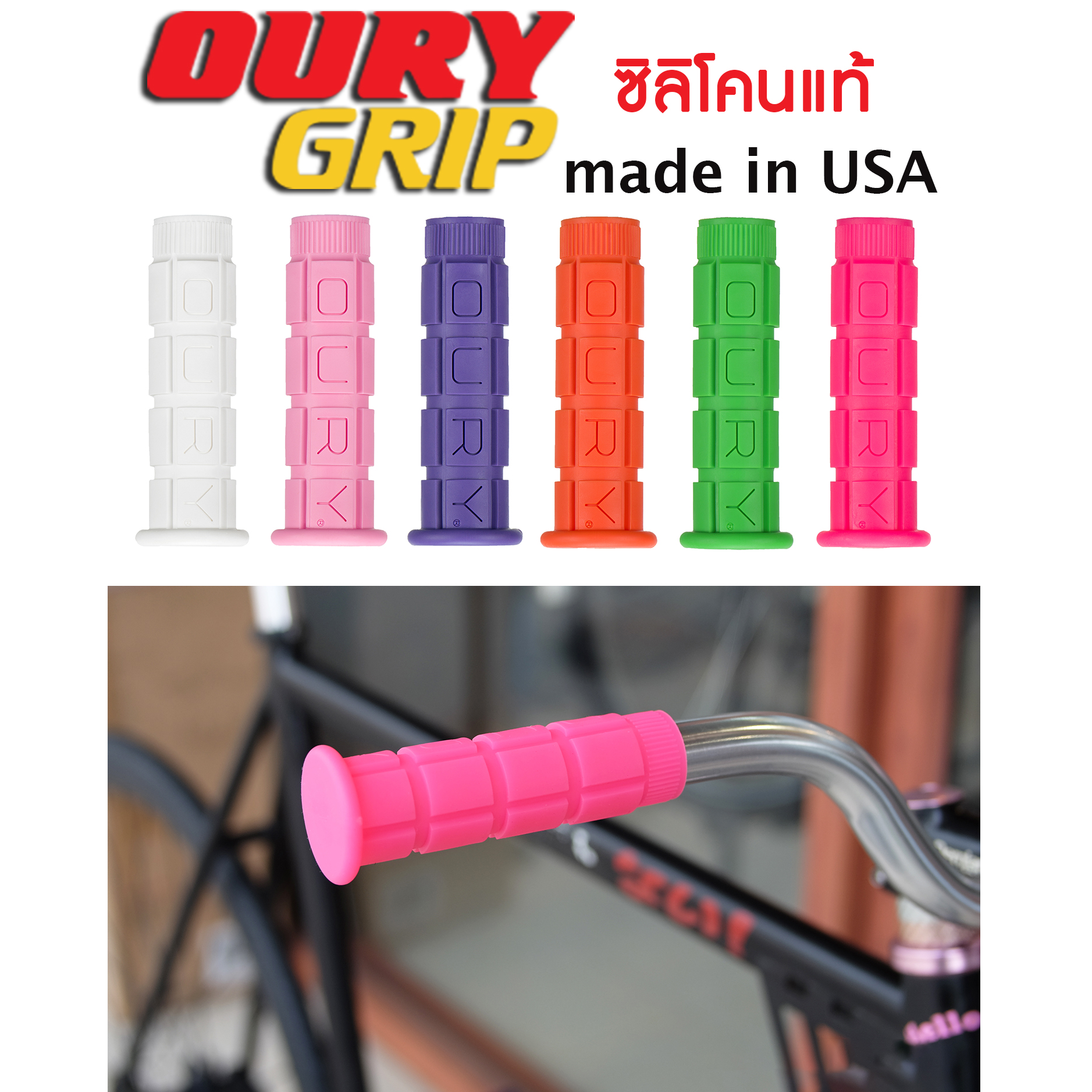 ปลอกแฮนด์ เนื้อซิลิโคนแท้ OUR GRIPS MADE IN USA ความยาว 130/130มม available in black white pink hot pink green apple deep blue violet red orange chocolate brown glow in the dark