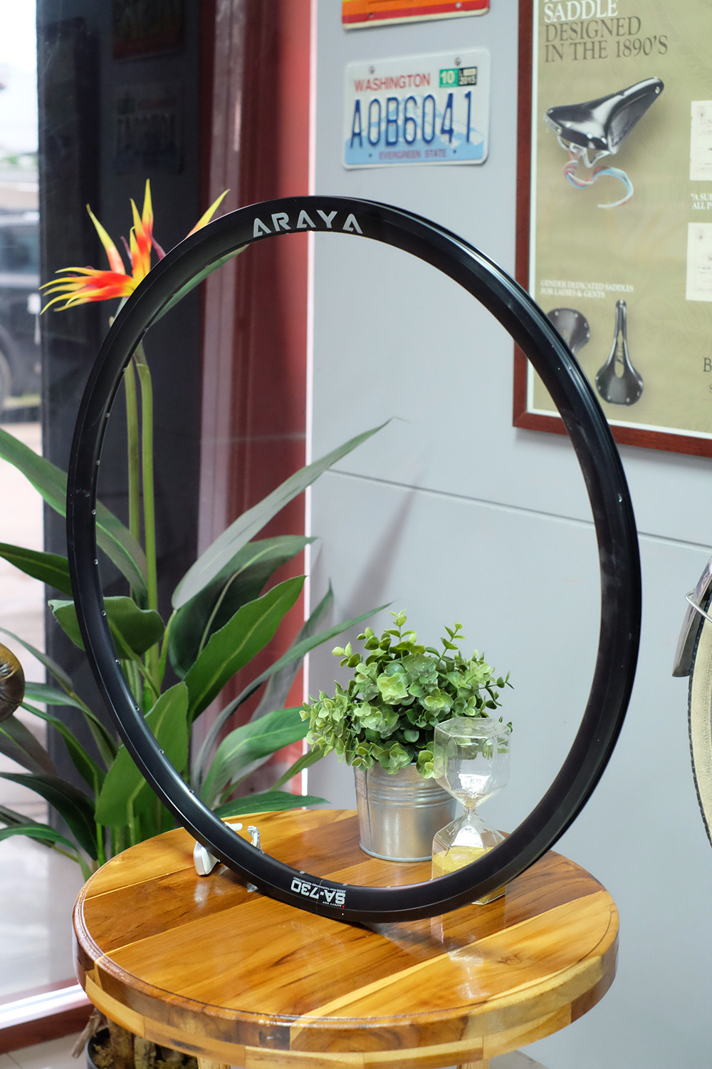 วงล้อเสือหมอบ ARAYA SA-730 ใครชอบล้อเหวี่ยงต้องรุ่นนี้ SA-730 หล่อใส หล่อดุ หล่อเนี้ยบ จบที่วงล้อรุ่นนี้ ขนาด 700c มี 32 และ 36 รู สำหรับเสือหมอบวินเทจ หรือ รถสไตล์นีโอฯ ขนาด 700c ใครต้องการแต่งงามๆ รุ่นนี้มีโมเมนตั้มสูง มีแรงเหวียงในตัว นี่คือคำตอบ ARAYA ผลิตวงล้อให้วงการจักรยานมาตั้งแต่ปี ค.ศ.1903 กว่า 114 ปีที่เคียงข้างนักปั่น การันตีคุณภาพ คุ้มราคา ขอบสูง 30มม ขนาด 700c น้ำหนัก 550กรัม มีขนาด 32 และ 36รู