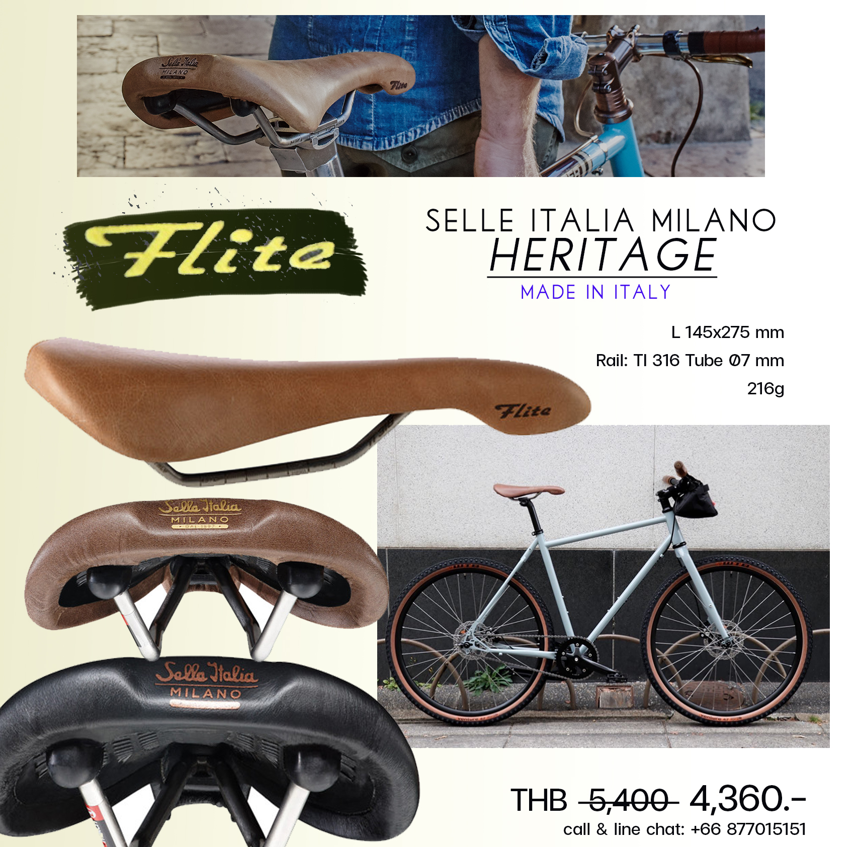 Selle Italia รุ่น Flite อานวินเทจรางไททาเนียม น้ำหนัก เพียง 216 กรัม รุ่น Flite ถือเป็นไอคอนแห่งยุค 90s เสือหมอบทรงอิตาลีจัดว่าเป็นอานคู่กัน ทรงเพรียว หรูหรา น้ำเบา สเปกมาครบๆ L 145x275 mm Rail: TI 316 Tube Ø7 mm An eternal style icon. Since 1991 น้ำตาล และน้ำผึ้ง แหล่งผลิต ประเทศ ITALY