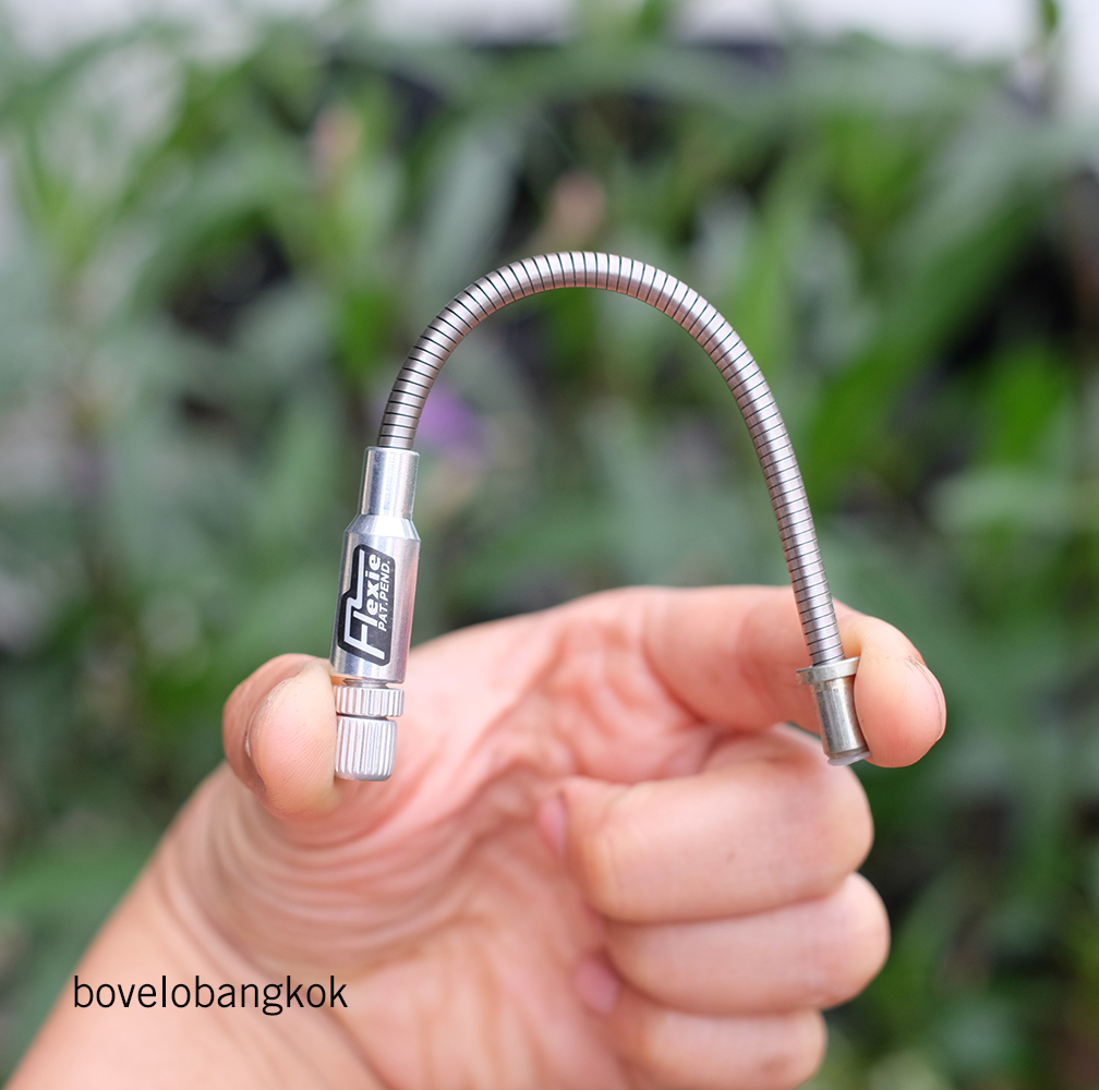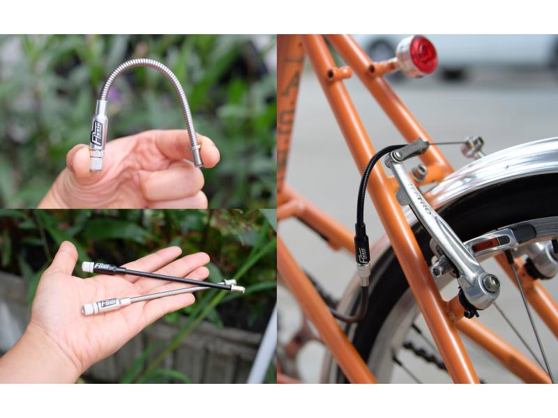 ข้อต่อปลอกสายเบรก เพิ่มความยืดหยุ่นในจุดที่โค้งมากๆ สำหรับ เบรกก้ามปู วีเบรก หรือ BMX งอได้มากที่สุด มีตัวเร่งสาย ราคาต่อชิ้น แหล่งผลิต ประเทศไต้หวัน สินค้าไม่มีแพ๊คเก็จ เนื่องจากเป็นแพ๊คใหญ่แล้วทางร้านแบ่งขายทีละชิ้น • Extra flexible casing with cable adjuster • Additional length to the cable : 125mm • Stainless steel casing & aluminum adjuster