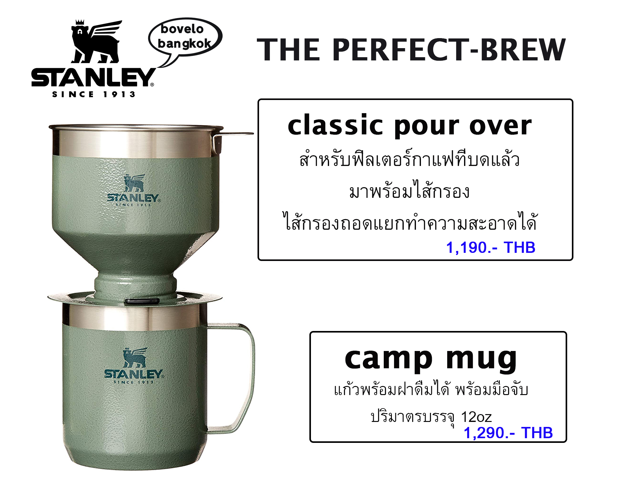 รายละเอียดสินค้า แก้วเก็บอุณหภูมิ แบบมีหูจับ พร้อมฝา STANLEY CAMP MUG 12.5oz ฝาแบบใส สต๊อกใหม่ปี 2022 ของแท้ มีรับประกัน 1 ปีเต็ม สินค้ามีกล่อง SPECS: Weight: 0.66 Dimensions: 4.70L x 4.00W x 4.30H in DETAILS: 12 OZ / .35 L 18/8 stainless steel, BPA-free Double-wall vacuum insulation Tritan™ drink-through lid Dishwasher safe Insulattion: 1.5 HRS HOT / 3 HRS COLD / 15 HRS ICED