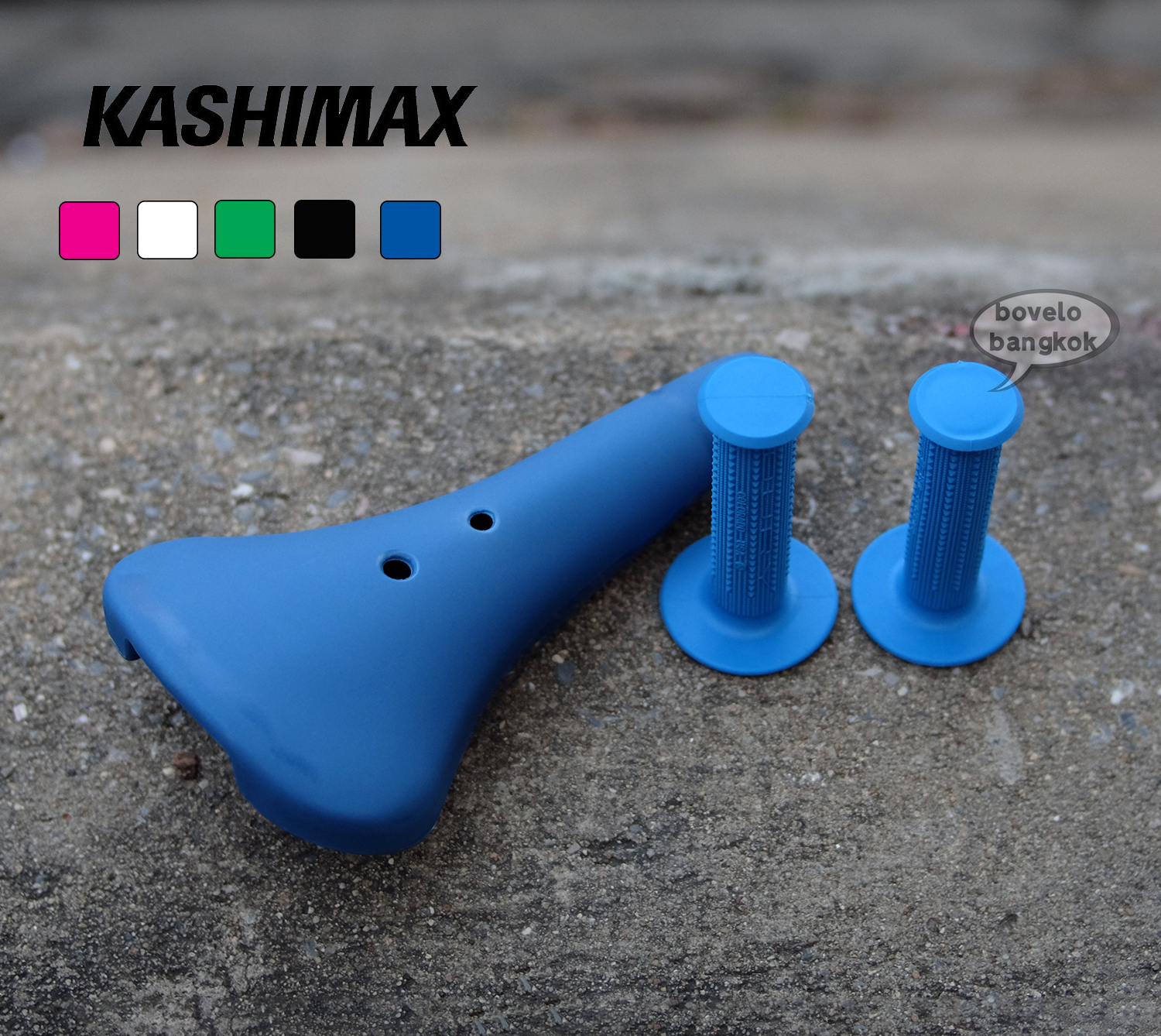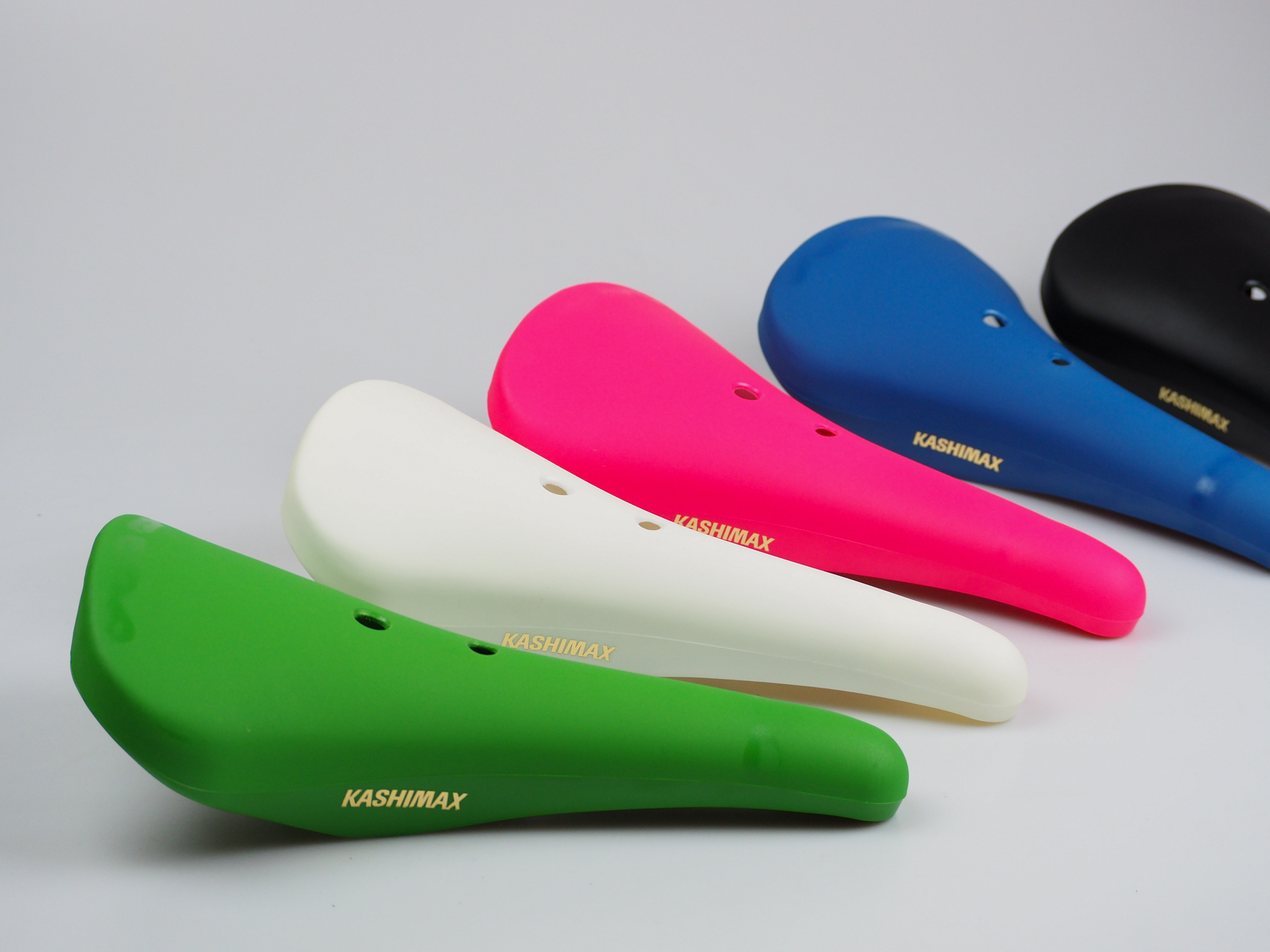 Old BMX revival saddles from KASHIMAX. อานจักรยาน BMX รุ่น MR-S กว้างกว่ารุ่น Aero เหมาะกับ BMX สายปั่น ฟิกเกียร์ หรือใส่จักรยานตามชอบ แหล่งผลิต ประเทศญี่ปุ่น สีสด ตามสไตล์ต้นฉบับ งานผลิตใหม่ๆ เต็มคุณภาพการใช้งาน สีขาว สีน้ำเงิน สีเขียว สีดำ สีชมพู -------------------------------------------------------- Wider than Kashimax aero saddles, which are great for BMX, Fixed gear bikes and commuter bikes. Available in many colors. Vivid colors are very 80's old school BMX. MADE IN JAPAN MADE IN JAPAN