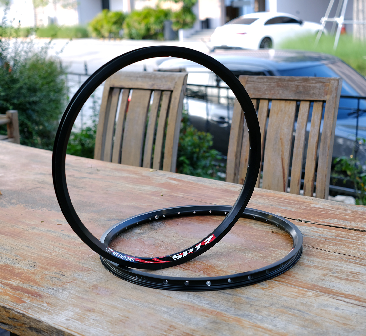รายละเอียดสินค้า วงล้อ WEINMANN SP17 อลูมิเนียม สำหรับวีเบรก / เบรกผีเสื้อ ซึ่งเป็นงานทำสีเต็มวง ทำให้ใช้กับเบรกได้ทั้งสองระบบ ทั้งดิสก์เบรกและวีเบรกก็ได้ ช่องด้านใน (สำหรับใส่ยาง) วัดได้ 17.5มม ช่องด้านนอก 22.5มม มีขนาด 26 นิ้ว (เสือภูเขา) ETRTO 559 และ ขนาด 20 นิ้ว (รถพับ/ คาร์โก้/ ทัวริ่งมินิ) ETRTO 406 material: Aluminium 6061-T6 Double Wall ขอบสองชั้น #weinmann #วงล้อจักรยาน #วงล้อ26นิ้ว #วงล้อ20นิ้ว