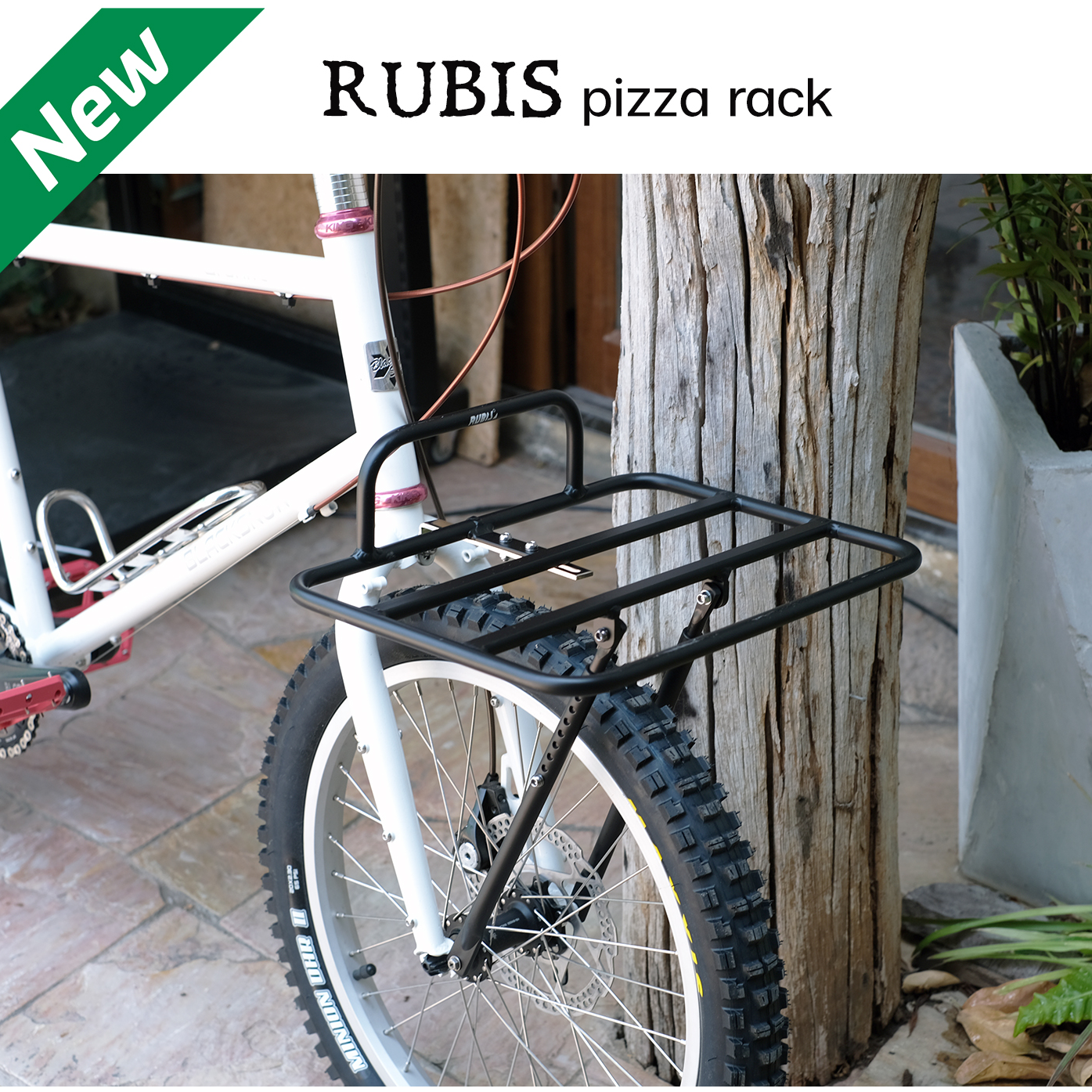 RUBIS PIZZA RACK ตะแกรงหน้าทรงแบน สำหรับติดล้อหน้า รองรับจักรยานขนาดล้อ 20 / 24 / 26 / 27.5 / 700c วัสดุอลูมิเนียม ฐานจับหน้าตะเกียบสเตนเลสแบบหนา ขายึด-หดได้ ตามความสูงของตะเกียบหน้า กว้าง 35cm x ลึก 25cm แหล่งผลิต ไต้หวัน #rubis #pizzarack #ตะแกรงจักรยาน