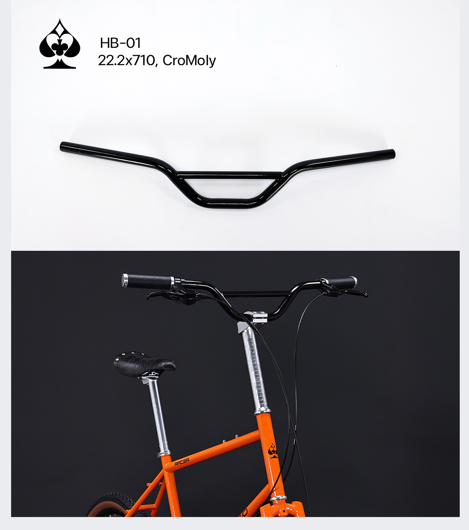 [NEW!] แฮนด์โครโม "MELO VELO รุ่น HB01 nologo วัสดุ Cromoly ฟีลการใช้งานแน่นๆ เฟิร์มๆ กว้าง 710มม พื้นที่ติดปลอกแฮนด์ 20มม ใช้ปลอกแฮนด์ยาวๆ ได้สบายๆ * มาพร้อมสเต็ม * ใช้สเต็ม 22.2 [bmx platform] มีเยื้องหลังเข้าหัวไหล่ ปั่นกระชับ แขนไม่โก่ง ใส่ได้เท่ทั้ง fixed / MTB / flat bar bike / minivelo colour: Gloss Black