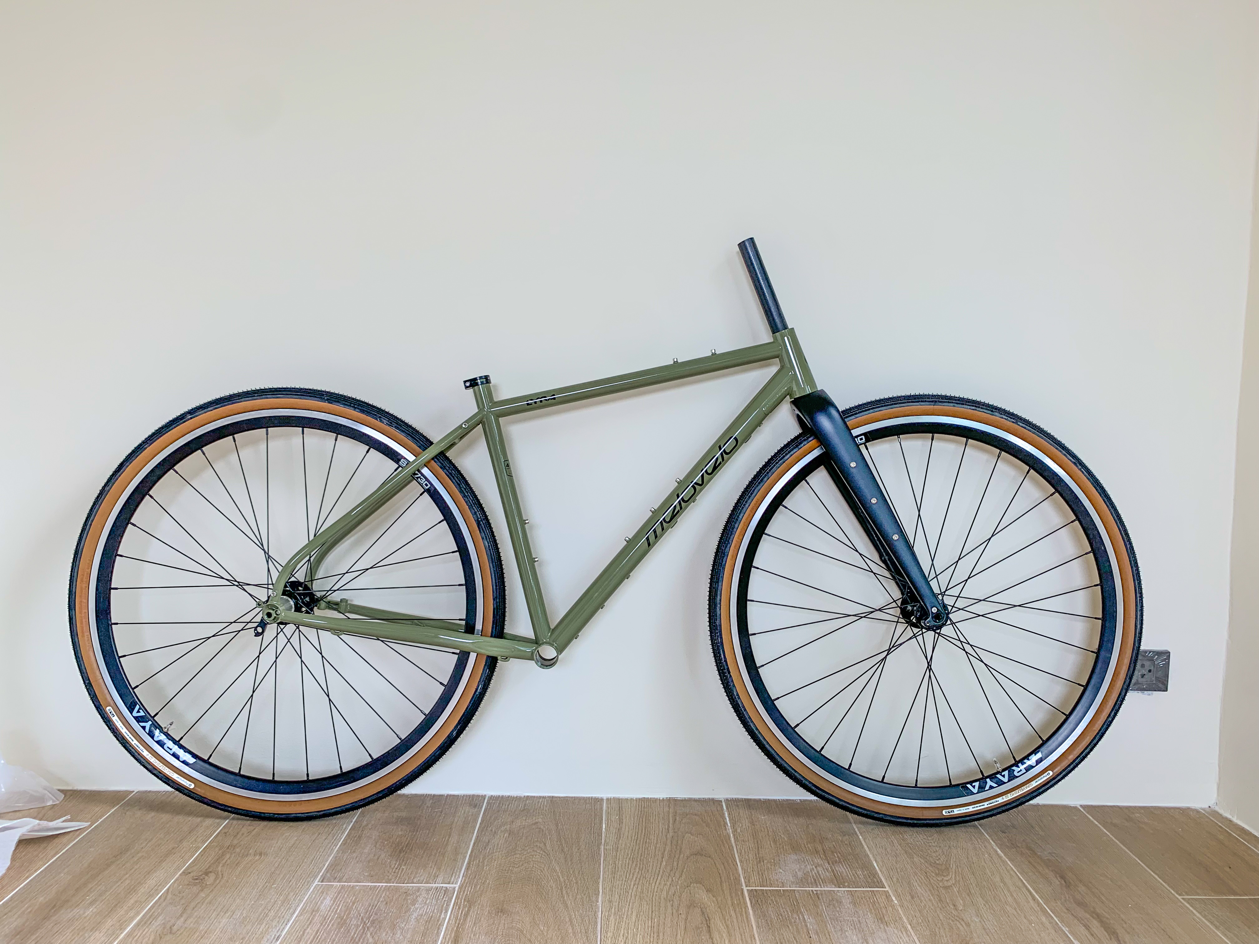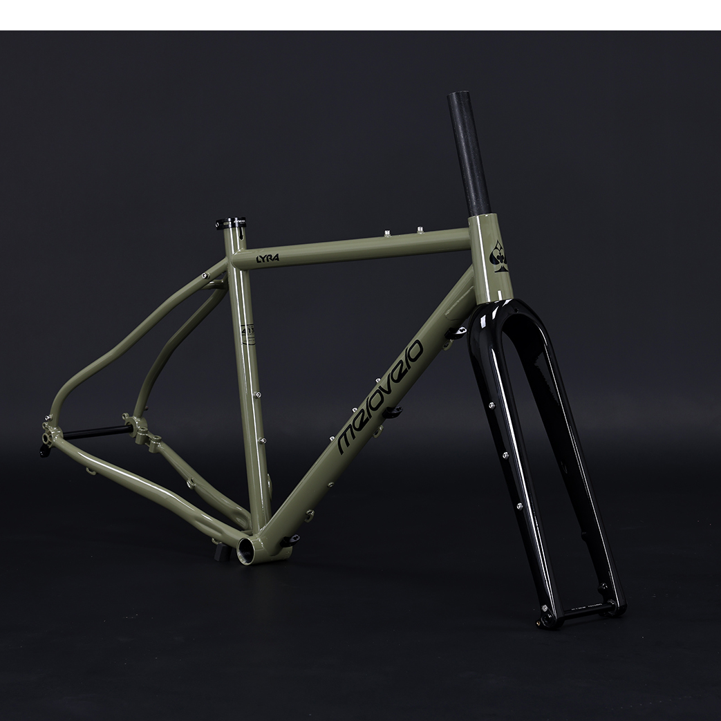 melovelo LYRA frameset : ALL ROADS/ GRAVEL wheelsize : 700c material: CroMoly 4130 fork: Full carbon / Tapered size 460 Geometry: stack: 535.7mm reac: 359mm stack to reach ration: 1.49:1 seat tube lenght, C-T 460mm top tube lenght, Effective: 518.6mm head tube angle: 70deg seat tube angle: 74.5 deg head tube length: 110mm BB drop: 65mm BB height: 291mm chain stay length: 425mm chain stay lenght - Horizontal : 420mm front center: 593.6mm front center horizontal : 585mm wheelbase: 1005mm fork offset/Rake: 45.8mm fork lenght: 407.6 trail: 80.8mm (very high) mechanical trail: 76mm tire to pedal spindle: 67.6 (with 170mm cranks) wheel flop: 26mm pedal spindle to ground clearance: 121mm (with 170mm cranks) _______________________ BASE BUILD wheelsize: 700c/29 inch tire width: max 45mm bike lenght with tires: 1717mm