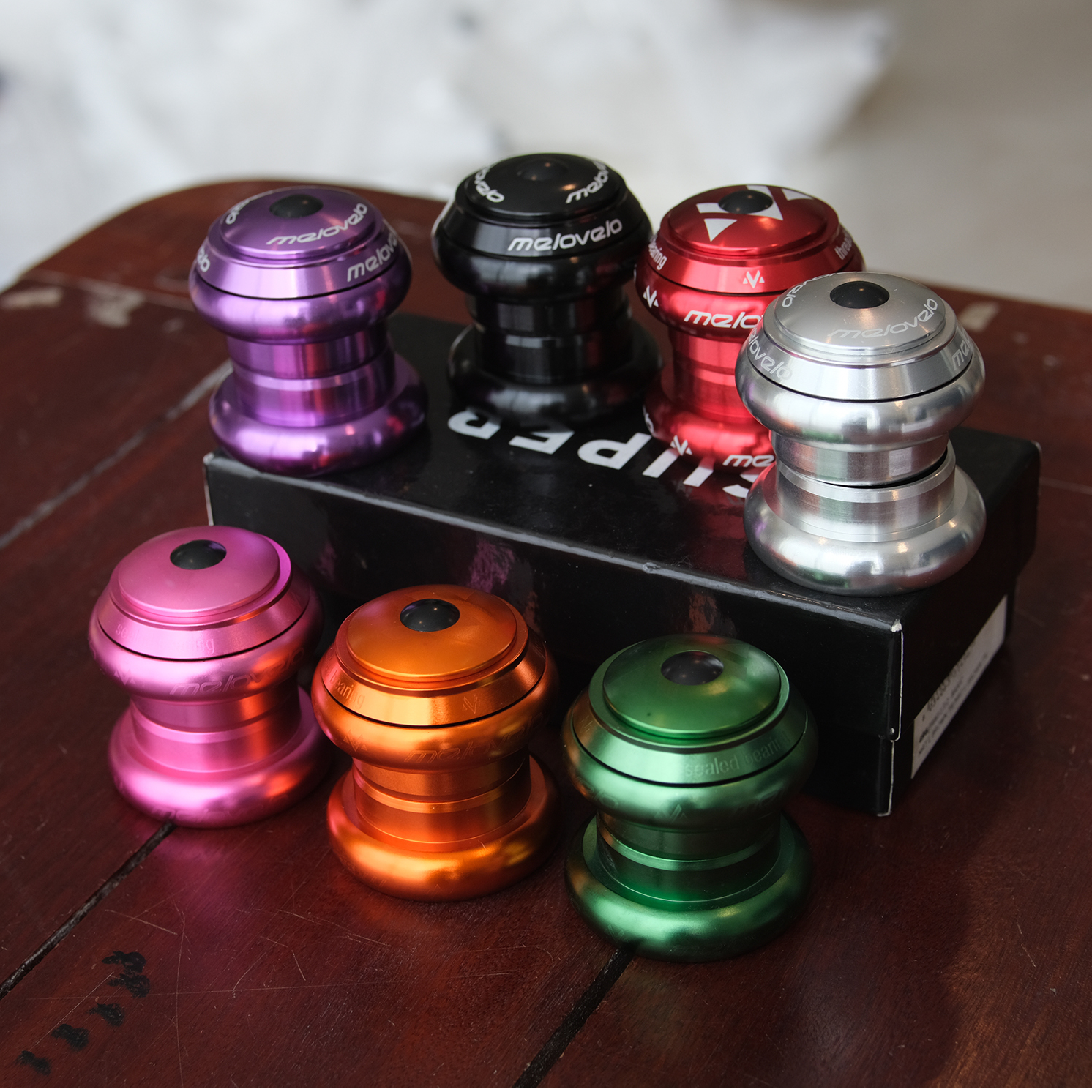 ถ้วยคอจักรยาน MELOVELO 1-1/8 No thread ลูกปืนตลับ แหวนผ่าแล้ว ไม่ต้องใช้ท่อตอกอัด ทำงานสะดวกสบาย aluminium body BLACK GRAPE (VIOLET) SILVER ELECTRIC PINK CHERRY RED PEWTER #headset #ถ้วยคอ #จักรยาน #สีม่วง #ถ้วยคอสี