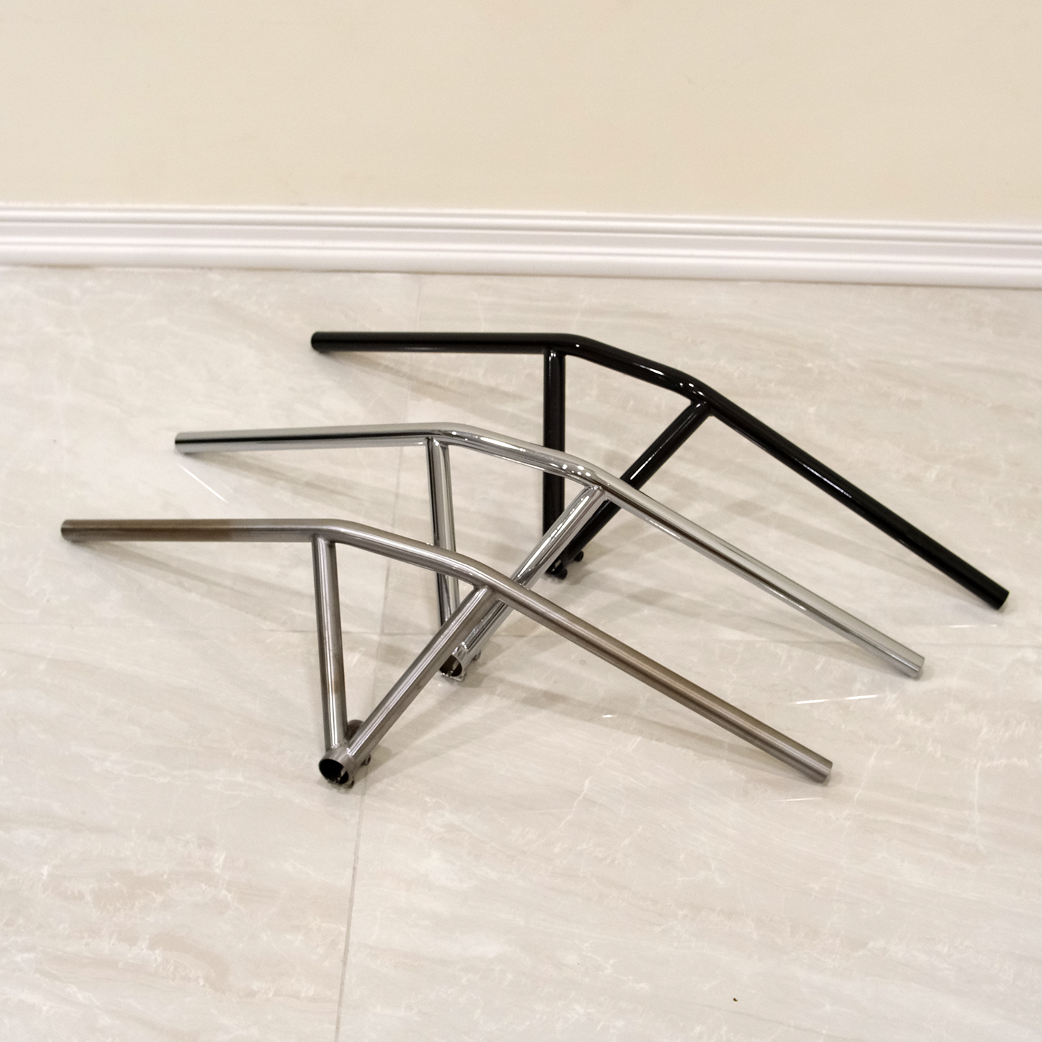 material: CroMoly width: 800mm steering: 28.6 extension: effective 100mm เมื่อติดตั้งแล้วระยะขนานพื้น rise 160 clamp steering: 5.5cm height with 2 bolts วัสดุ โครโมลี กว้าง 800 รัดซาง 28.6 แคลมป์หนีบซางสูง 5.5ซม ยก 160 ยื่น 100 และเยื้องกลับตำแหน่งเดียวกับซาง สีดิบ สีดำ และชุบโครเมียม #bullmoose #melovelo #จักรยาน #แฮนด์จักรยาน