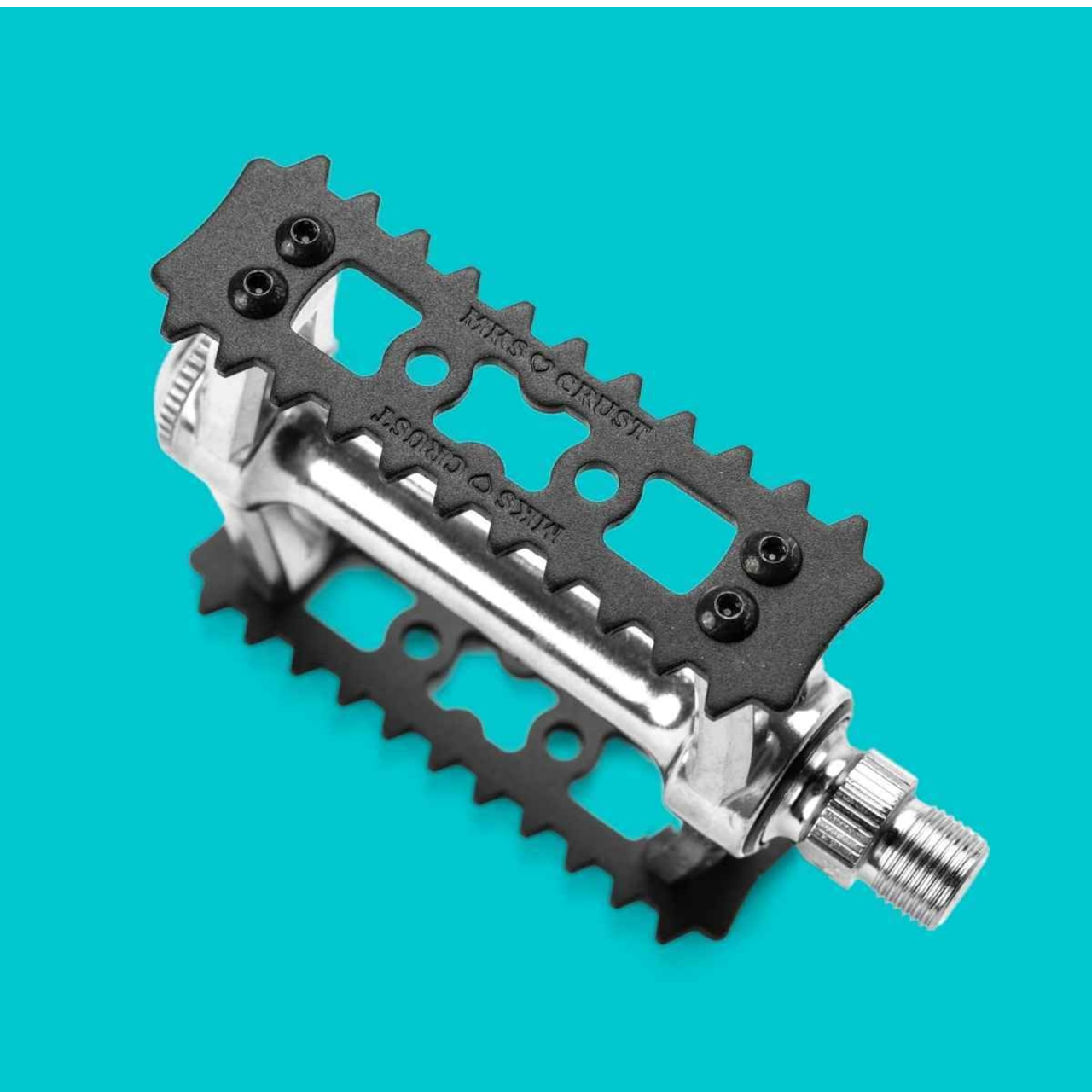 MKS×CRUST Super Sylvan Gordito Pedal เป็นบันไดรุ่นพิเศษที่ทาง MKS PEDAL ร่วมพัฒนากับ CRUST BIKE บนพื้นฐานของรุ่น Gordito ที่เดิมเป็นงานร่วมของทั้งสองแบรนด์อยู่แล้ว แต่เพิ่มเติมตรงที่ พื้นเหยียบจะเน้นยึดเกาะพื้นรองเท้าได้มากกว่าเดิม (extra grip stepping area) มิติ 9.5x8.5cm น้ำหนัก 218กรัม MADE IN JAPAN SPEC スピンドル: 9/16インチ サイズ:9.5×8.5cm(踏み面) 重量:約218g(片側) 左右ペア #mkspedal #mksgordito #mkssupergordito